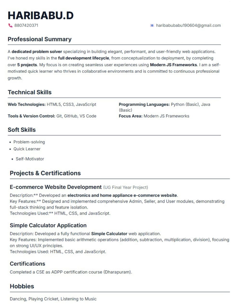 I specialize in building elegant, performant, and user-friendly web applications. With 1 years of experience, I've honed my skills in the full development lifecycle, from conceptualization to deployment.